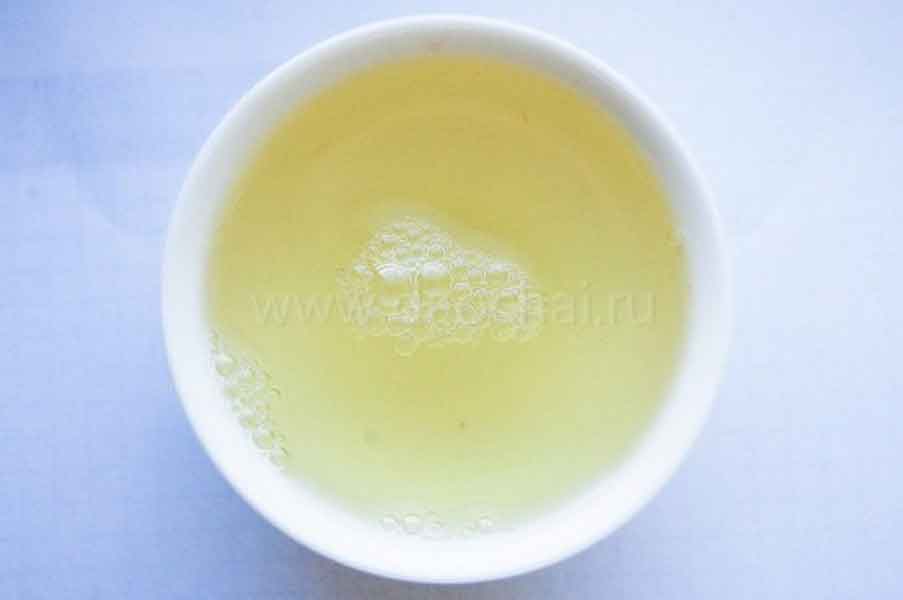 Заваривать чай будем методом ПинЧа в малой гайвани. Для этого подготовили 5г свежего чая и мысленно приготовимся к самому вкусному и приятному. Что видим? Чай Люань Гуапянь представляет собой слабоскрученные листики в продольном направлении. Все чаинки поразительно одинаковой длины и толщины, что указывает на стандарт сбора, темно-зеленого, или точнее глубого-изумрудного цвета. Отсутствуют чайные почки и черенки — только листы. Аромат: свежий Лю Ань Гуа Пянь легко «пробуждается», и в ответ на теплое дыхание можно ожидать волну свежих и одновременно сладких манящих ароматов: здесь нота каштана и полевых цветов. Наслаждаться ароматом чая, рассчитывая на взаимность при выдохе, можно долго, закрыть глаза и позволить воображению унести себя куда-нибудь за горы на луга от суеты сует. Несмотря на сладость — вкус остается серьезным, по крайней мере построже, чем у лунцзина. Как заваривать? По степени скрутки листа и его форме можно судить о том, что чай будет быстро экстрагировать (завариваться). В принципе практически любой зеленый чай заваривается охлажденным кипятком, но для Лю Ань Гуа Пянь особенно важно подобрать температуру воды. Крутой или горячий кипяток сведет все прелести этого чая на «нет», сделает его однотонным и скучным. Поэтому позаботьтесь о том, чтобы вода остыла до 70 максимум 80 градусов. Мы использовали в этих целях чахай, налив туда нужное количество кипятка и дав постоять пару минут. Аккуратно заливаем чай в гайвани и ждем … первая заварка … чай скручен несильно и заваривается быстро … 20 секунд достаточно. Первую заварку не сливаем! Это зеленый чай не подразумевающий пыльного производства, ну и для некоторых «зеленых» первая заварка оказывается самой вкусной. В последующих 2 завариваниях уменьшаем время выдерживания чая в кипятке до 15 секунд. Дальше каждый раз увеличиваем на 5-10 секунд. Всего Лю Ань Гуа Пянь выдерживает 6-7 проливов. Готовый чай: настой зеленовато-желтый и прозрачный (фото выше). В последних завариваниях начинает доминировать желтый цвет Аромат сохраняет ноты сухого листа, он достаточно низкий и не поднимается высоко над пиалой. Вкус очень контрастный. «Первое прикосновение» достаточно терпкое, но переходящее в сладкое цветочное послевкусие. Интересно отметить: при остывании чая контраст первого впечатления и послевкусия заметно усиливается. Заварив крутым кипятком — доминирующая терпкая нота перейдет в горечь, что оставит неприятный осадок от употребления чая. Поэтому, еще раз, будьте внимательны с водой! Лю Ань Гуа Пянь очень хорошо освежает, стирает накопившуюся усталость и прибавляет позитива)Источник : https://daochai.ru