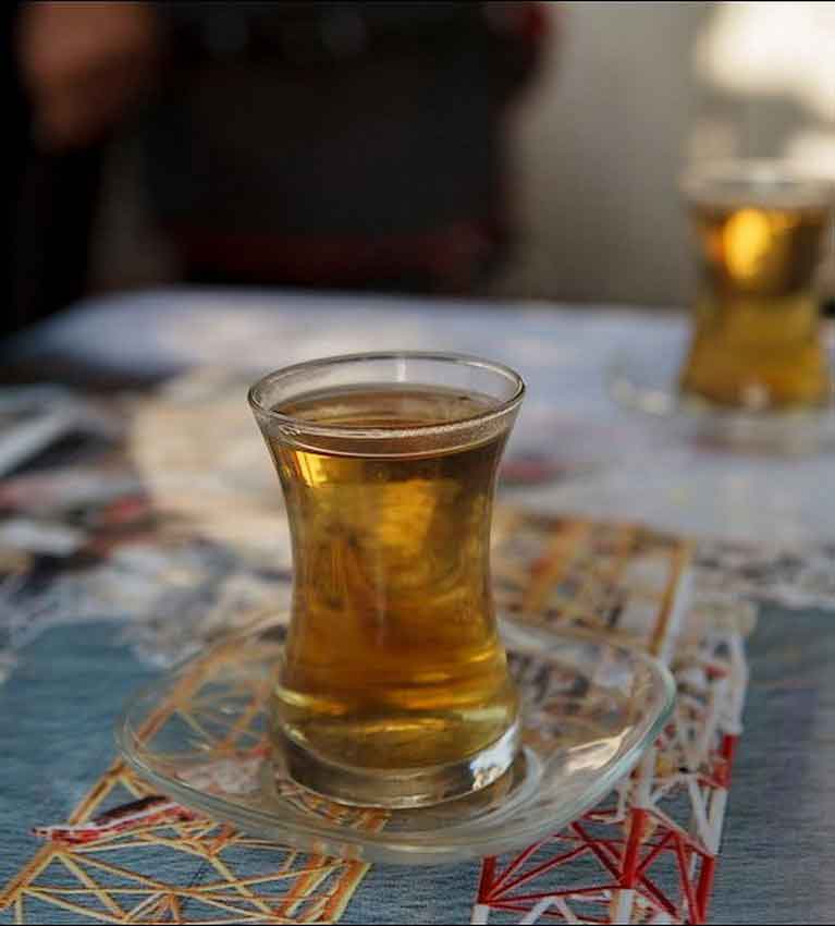 Специфическая форма армуды позволяет охлаждаться верхнему слою чая и сохранять относительно горячим нижний слой чая. Армуд имеет небольшой объем, и, поскольку чаепитие длится долго, выпивают по несколько стаканов. Специфичным является и то, что стаканы доверху не наполняются: на 1-2 см сверху оставляется место, которое часто бывает выделено ободком. Это расстояние в народе называют “додаг йери”, что буквально переводится как место для губ.