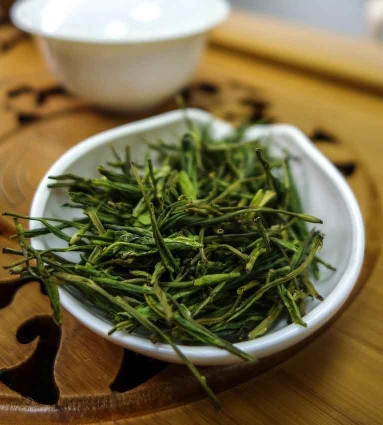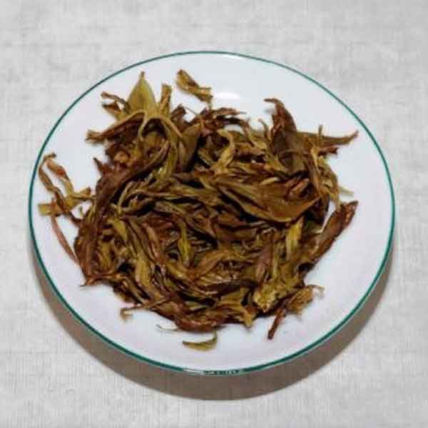 Чай этот начинают собирать каждый год в конце мая, берут 2 или 3 листа. Цвет зелёный, с розовыми вкраплениями, послевкусие очень многогранное и впечатляющее. Выделанный лист по цвету бежевый с молочно-белыми проявлениями. Цвет настоя оранжево-жёлтый блестящий, попадая в рот, вкус остаётся на зубах и щеках, дух очищается, взор проясняется.