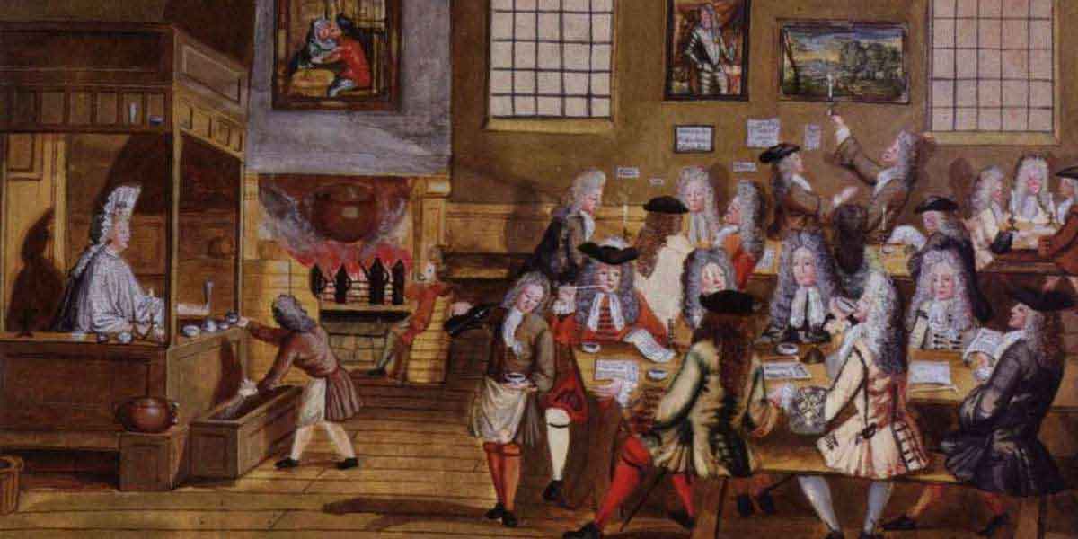Когда журналистика была еще не достаточно развита, можно было без труда узнать новости в кофейне». Вскоре у каждой кофейни появилась собственная особая клиентура, от бизнесменов и политиков до научных работников, поэтов и священнослужителей, позже на их основе сформировались клубы для джентльменов. Некоторые из этих заведений положили начало успешным и долгоживущим учреждениям. Наиболее известным примером является кофейня Эдварда Ллойда, ставшая местом рождения «Фирмы Ллойда в Лондоне», и сегодня являющаяся мировым лидером на рынке страховых услуг.