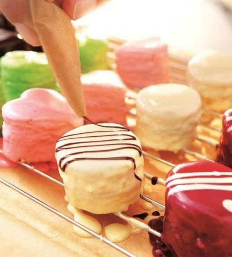 Оставить на 30 минут, чтобы на поверхность макаронс немного подсохла.