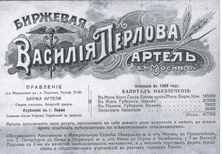 Все началось в далеком XVIII веке. Московский купец Иван Михайлович, прихожанин церкви Алексия Митрополита, что в Рогожской слободе, имевший собственный дом на Большой Алексеевской улице, записался в купеческую гильдию, и занялся розничной торговлей. Его сын Алексей в 1787 году открыл в Москве розничные чайные лавки, а в 1807 году принял новую фамилию Перлов. Единственным в ту пору импортером чая был Китай, откуда чай направлялся в Россию через забайкальскую Кяхту. К концу XVIII века его поставки возросли с изначальных 3 тысяч пудов до 30 тысяч. Цены на него колебались без ограничений, чай везли цыбиками (ящиками) без разбору сортов и качества. Именно тогда и началось чайное дело Перловых. Стремительный взлет к финансовому благополучию и всеобщему признанию произошел благодаря предпринимательскому таланту и деловой хватке Василия Алексеевича Перлова, который в 1864 году вложил семейный капитал в создание фирмы «Перлова Василия с сыновьями. Товарищество чайной торговли». Он взялся за дело с размахом, и к конце XIX века Перловы уже имели 88 магазинов в России и Европе, а в одной только Москве — 14 магазинов на центральных улицах, где торговали еще сахаром и кофе. Товар поставлялся теперь не только из Китая, но и из стран Юго-Восточной Азии, Индии, Ближнего Востока, и Чайной империи — Великобритании. После смерти Василия Алексеевича в 1869 году произошел семейный раздел. Фирма «Василий Перлов с сыновьями» отошла его старшему сыну Семену Васильевичу вместе с домом на Мещанской. А младший сын Сергей Васильевич получил дом на Мясницкой, 19, купленный его отцом еще в середине XIX века. Выделившись, он основал собственную фирму — Товарищество чайной торговли «Сергей Васильевич Перлов и Ко».